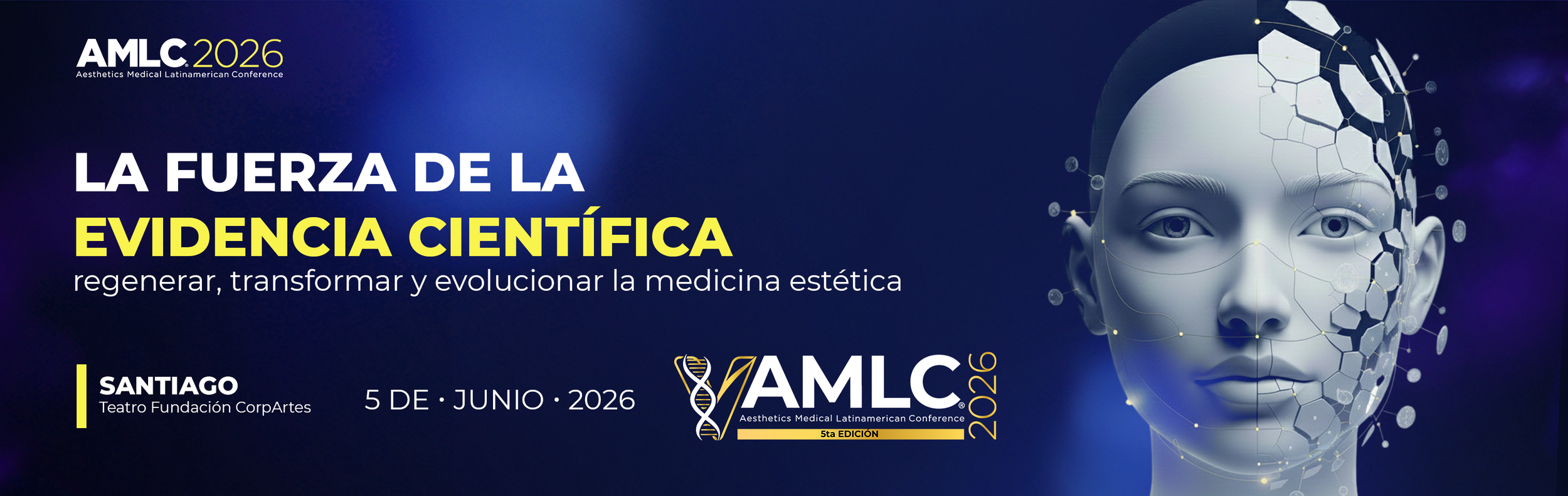 Es un honor darles la bienvenida a la quinta edición de la Aesthetic Medical Latinamerican Conference (AMLC 2026), que se llevará a cabo el 5 de junio en el Teatro CorpArtes, en Santiago de Chile.